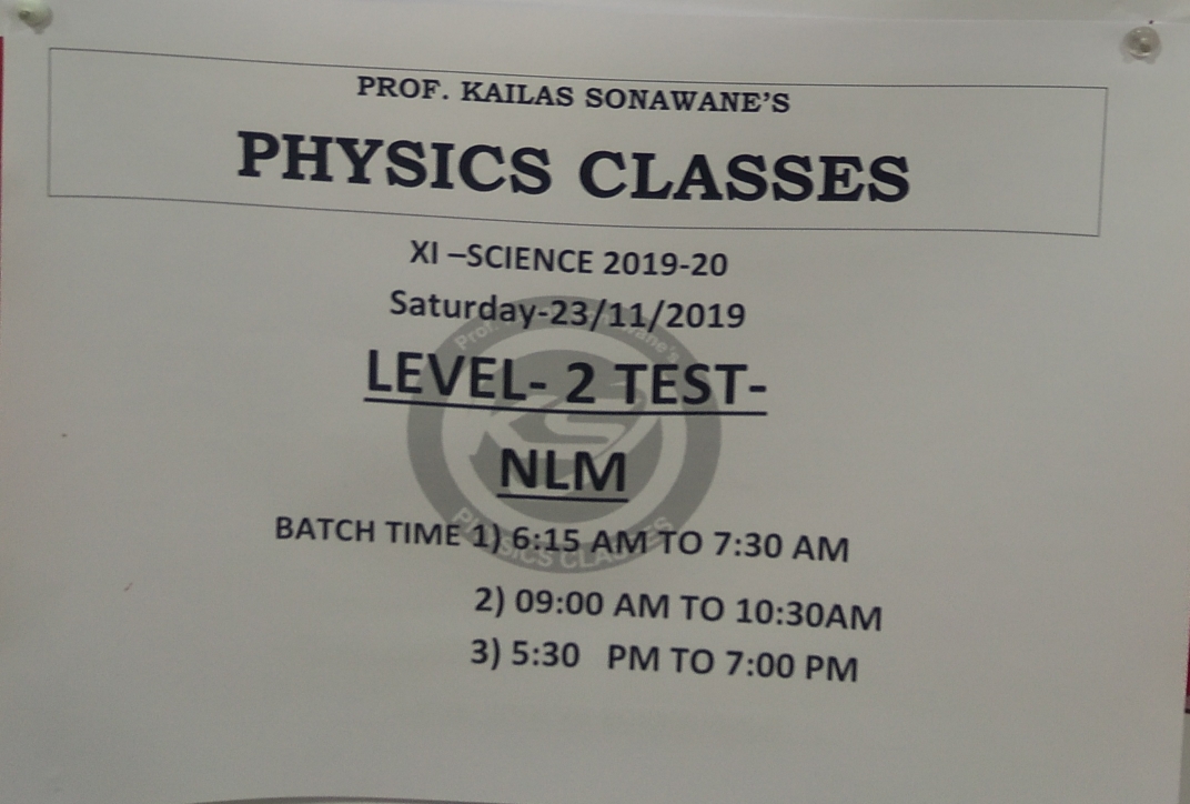 Prof.Kailas Sonawane's Physics Classes This Week Exam Schedule XI Level 2 NLM Date 23/11/19